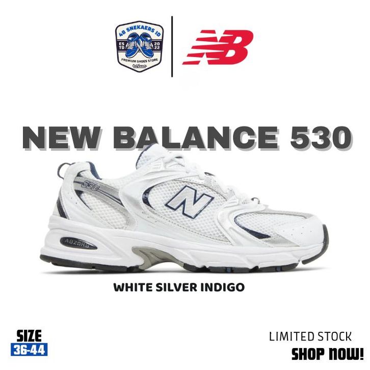 Sepatu Sneakers Nb Pria & Wanita New Balance 530 White Silver Navy Indigo BNIB Best Seller Import Premium