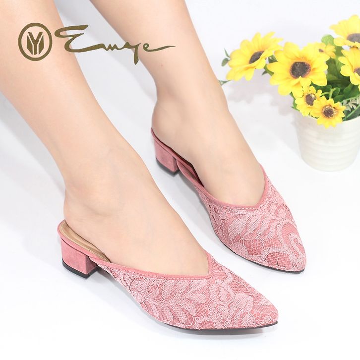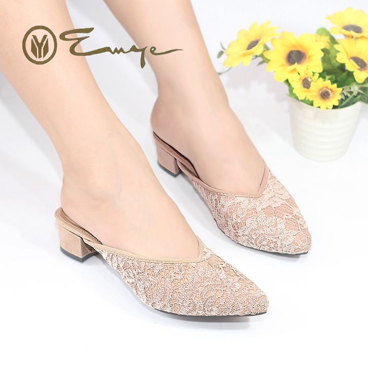 Sandal Kondangan Wanita Emye Sepatu Sandal Brukat Payet Wanita Hak 3Cm Heels Wanita Sandal Pesta Wanita Sandal Wedding