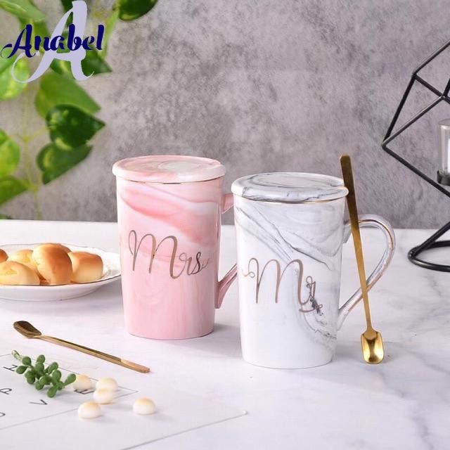 GELAS MINUM AESTHETIK Gelas Couple Mug Set Mr & Mrs 2In1 26H0H98