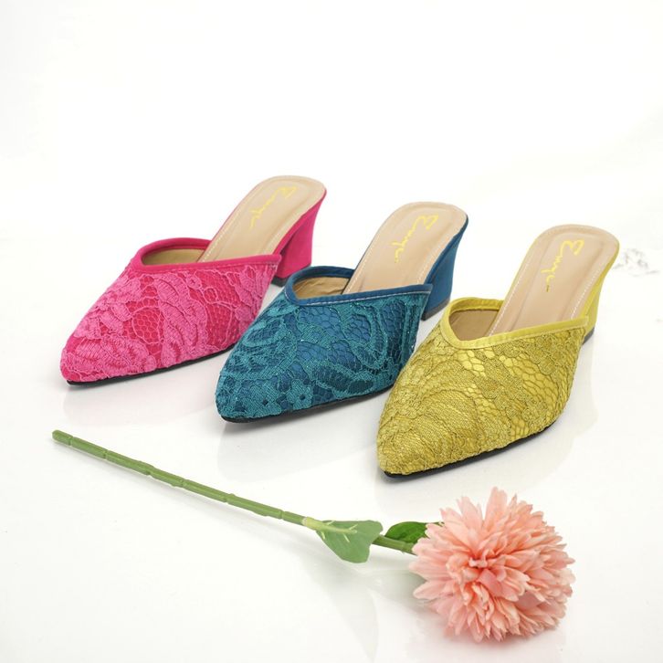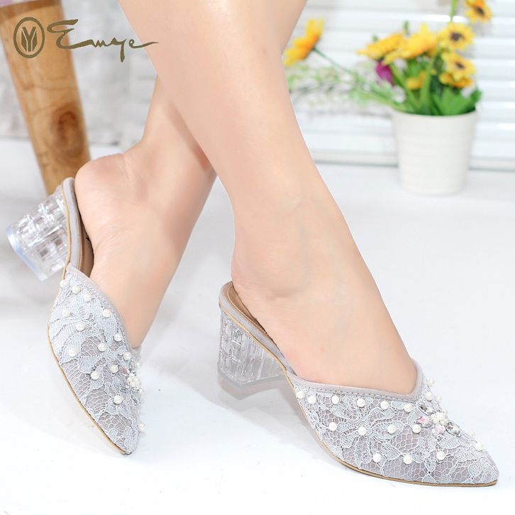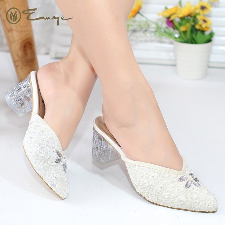 Sandal Brukat Wanita Emye Sepatu Sandal Hak Kaca Payet Brukat Pengantin Wanita 5Cm Azalea 05 Sandal Kondangan Wanita Ori