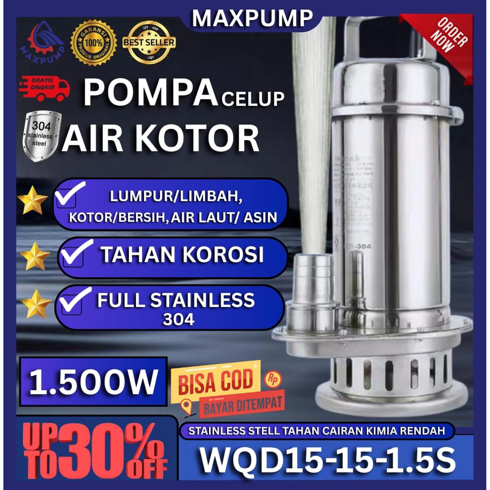MAXPUMP POMPA CELUP AIR KOTOR 2INCH 1.5KW FULL STAINLESS SEWAGE PUMP AIR LAUT ASIN ANTI KARAT KURAS LUMPUR / KIMIA