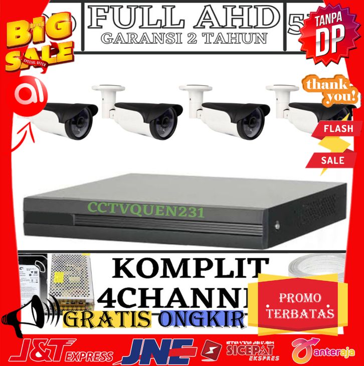 ASLI PAKET CCTV 4 CHANNEL 4 KAMERA FULL AHD 5MP IR SONY 1080P HDD-500GB KOMPLIT TINGGAL PASANG