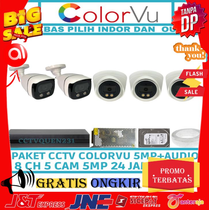 ASLI PAKET CCTV COLORVU 8 CHANNEL 5 KAMERA FULL COLOR 5MP 1080P IR SONY TURBO HD KOMPLIT