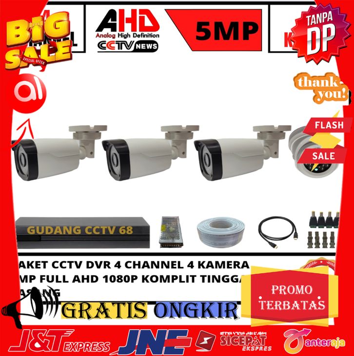 ASLI PAKET CCTV DVR 4 CHENNAL 4 KAMERA 5MP FULL AHD 1080P INFRARED KOMPLIT TINGGAL PASANG