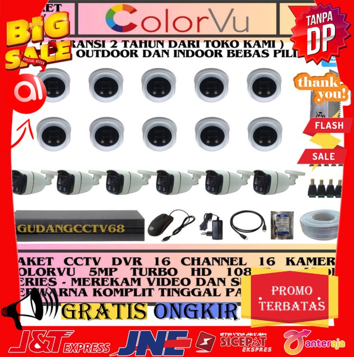 ASLI PAKET CCTV COLORVU 16 CHANNEL 16 KAMERA 5MP FULL COLOUR/24 JAM BERWARNA 1080P AUDIO SERIES KOMPLIT