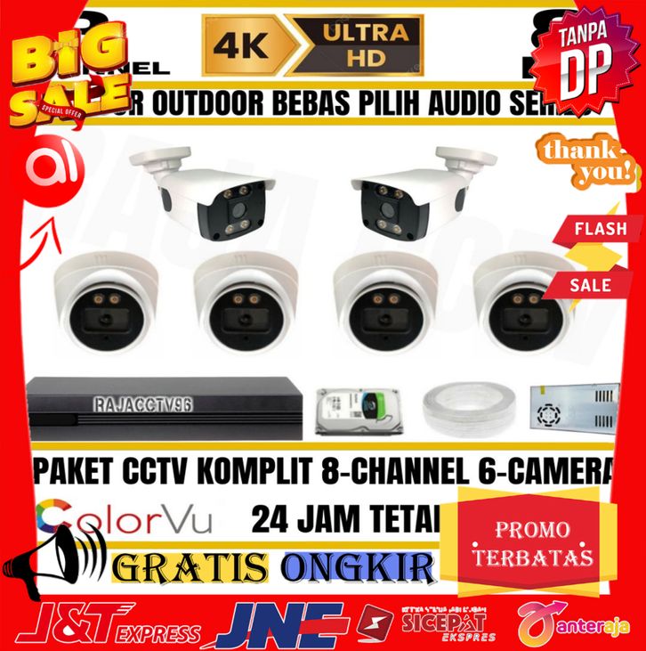 ASLI PAKET CCTV 8MP COLORVU COLORFUL 8 CHANNEL 6 KAMERA ULTRA HD 4K CAMERA AUDIO SERIES SIANG MALAM WARNA IC SONY