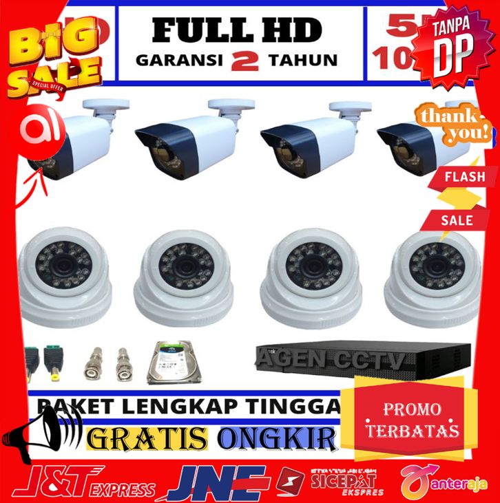 ASLI PAKET CCTV 8 CHANNEL 8 KAMERA LENSA 5MP 1080P IC SONY 4 INDOOR 4 OUTDOOR GARANSI 2TAHUN