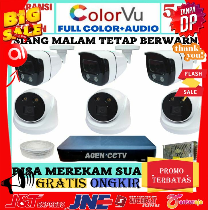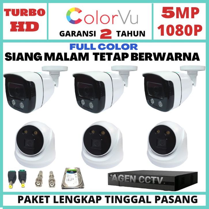 ASLI PAKET CCTV COLORVU+AUDIO 8 CHANNEL 6 KAMERA LENSA 5MP 1080P IC SONY XMORE TURBO HD
