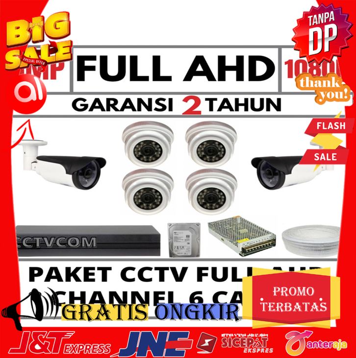 ASLI PAKET CCTV AHD 8 CHANNEL 6 CAMERA 5MP 1080P KOMPLIT TINGGAL PASANG CCTVMURAH