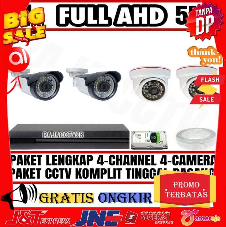 ASLI PAKET CCTV 4 CHANNEL 4 CAMERA FULL AHD 5MP 1080P IR SONY KAMERA CCTV KOMPLIT TINGGAL PASANG AUDIO SERIES