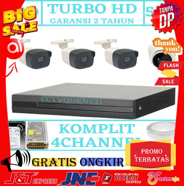 ASLI PAKET CCTV 4 CHANNEL 4 KAMERA IC SONY 5 MP TURBO HD 1080P KOMPLIT
