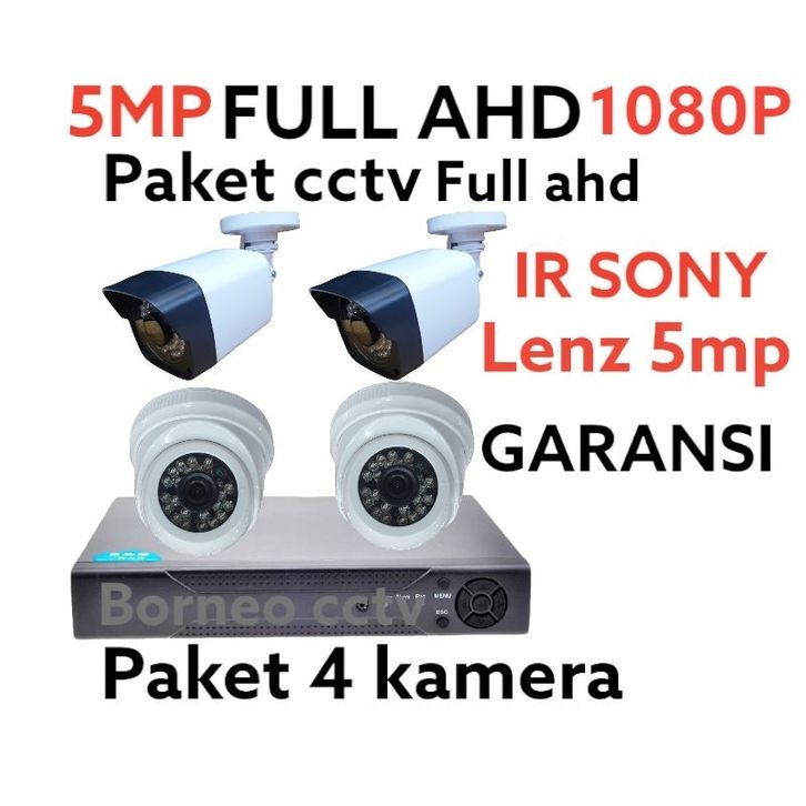 ASLI PAKET CCTV 4 CHANNEL 4 KAMERA LENSA 5MP 1080P FULL HD IR SONY
