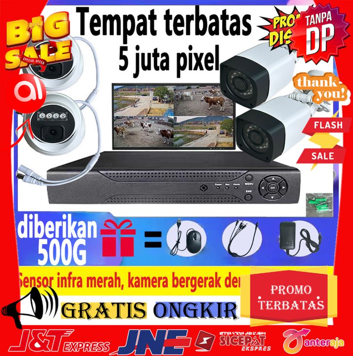 ASLI P&U PAKET 4 KAMERA CCTV 5MP DVRS KABEL 20M HARGA KHUSUS JUAL LAGI PROMO CCTV OUTDOOR CAMERAS