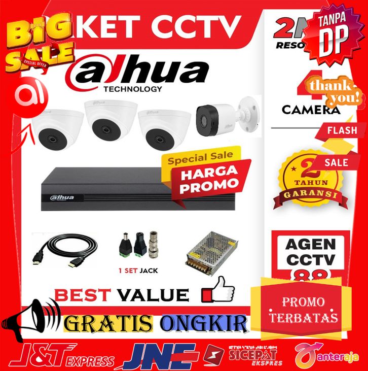 ASLI PAKET CCTV DAHUA 4 CHANNEL 4CH KAMERA FULL HD 2MP HARGA PROMO