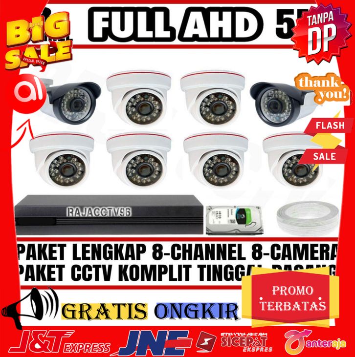ASLI PAKET CCTV DVR 8 CHANNEL 6 KAMERA OUTDOOR 5MP FULL AHD 1080P IR SONY INFRARED KOMPLIT TINGGAL PASANG