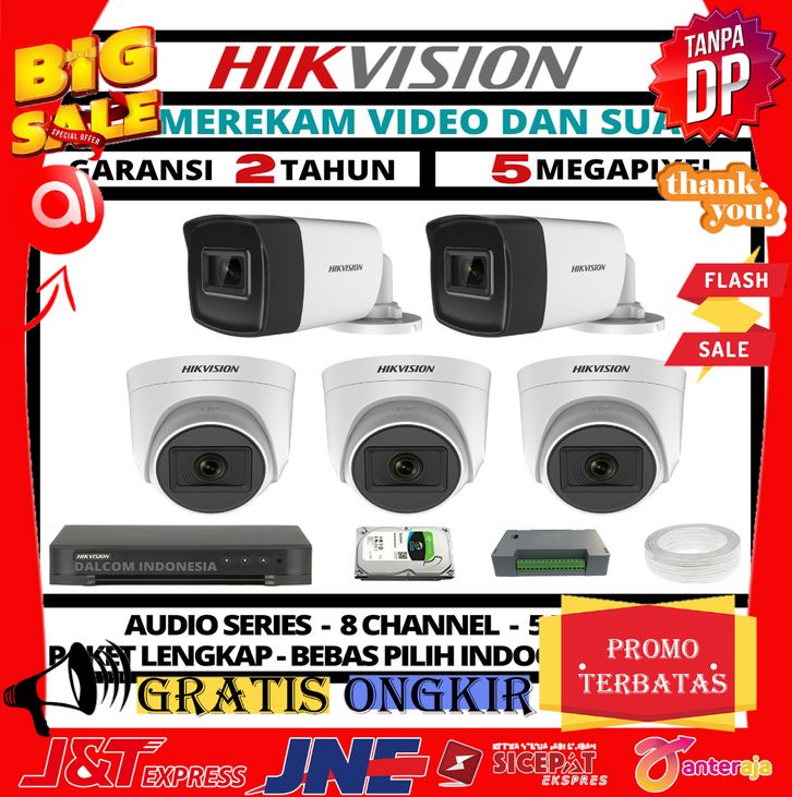 ASLI PAKET CCTV HIKVISION 5MP 8 CHANNEL 5 CAMERA TURBO HD KAMERA CCTV