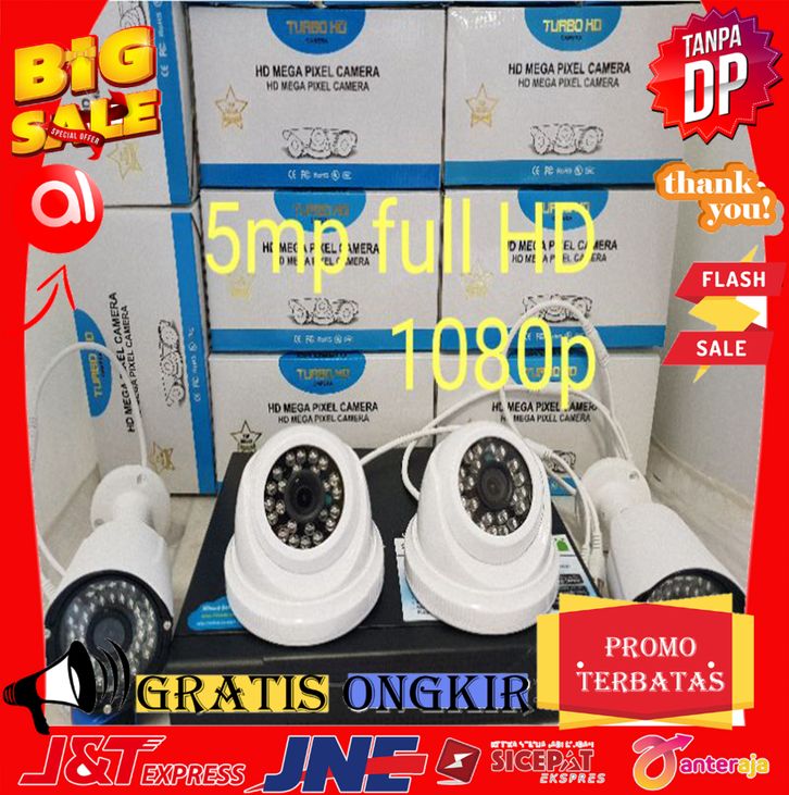 ASLI PAKET CCTV 5MP FULL HD 1080P 4 CHANNEL/4CH ( LENGKAP TINGGAL PASANG )MURAH