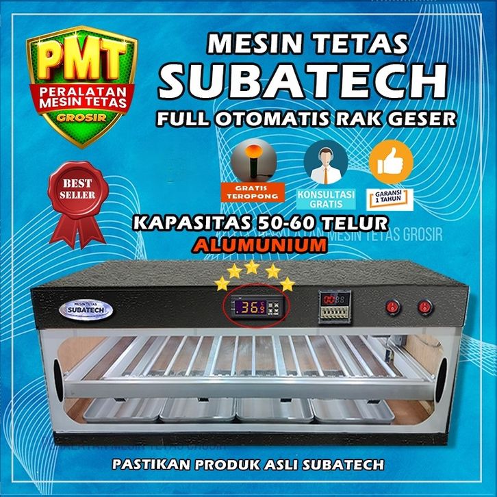 Mesin Tetas Telur Full Otomatis Penetas SUBATECH MTFORG 50 Rak Alumunium PMT