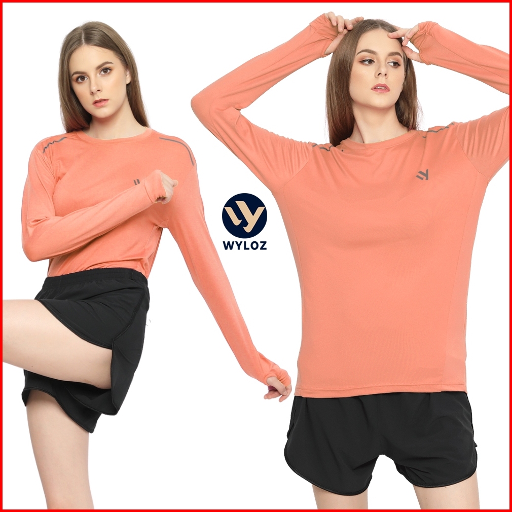 Wyloz Baju Kaos Olahraga Lengan Panjang Jumbo Big Size Jersey Training Lari Running Sepeda Sport Muslimah Senam Gym Fitn