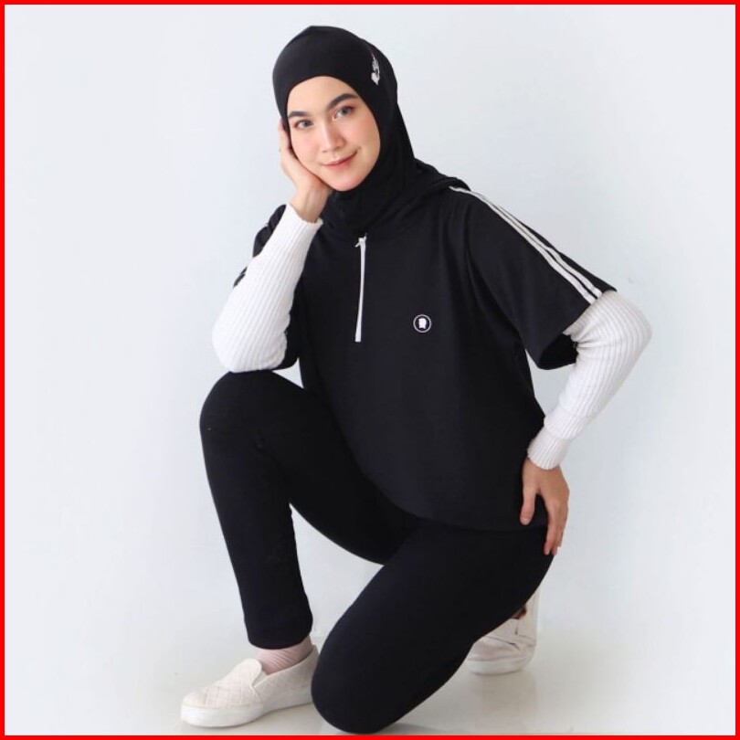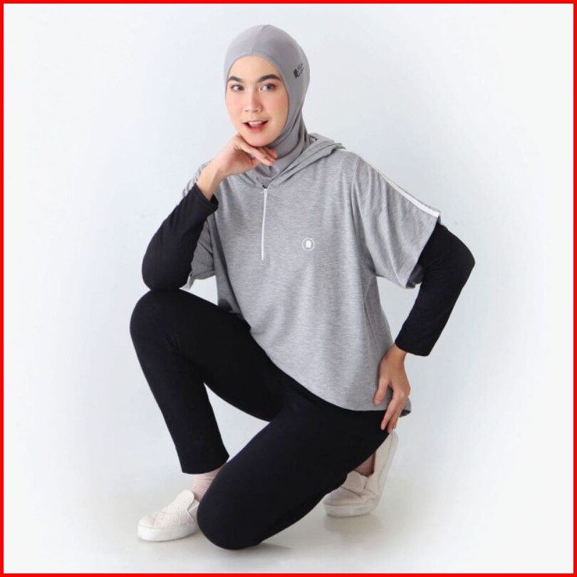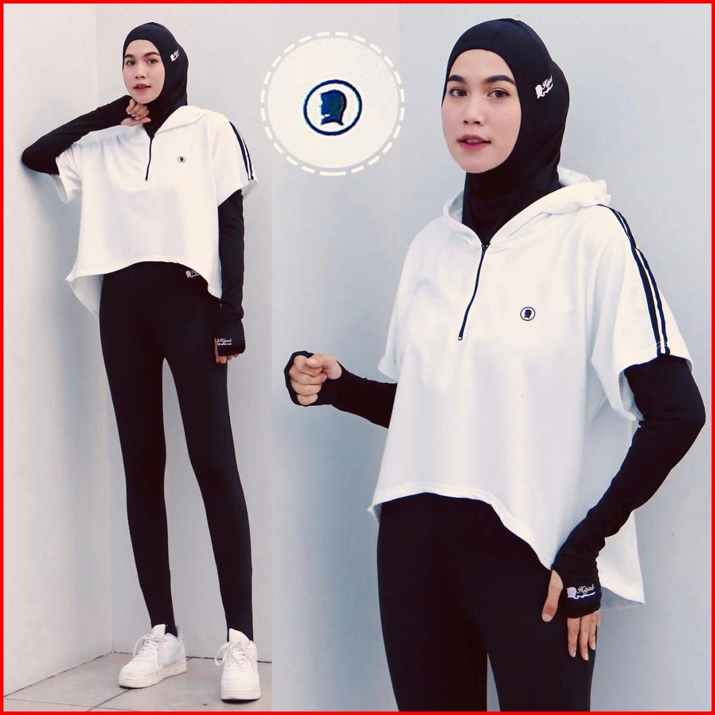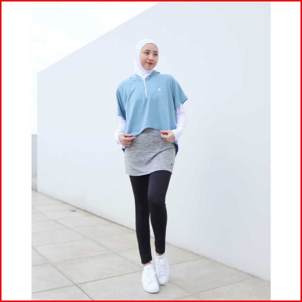 Asymmetric Hoodie Olahraga Padel Wanita Muslim Jumper Lari Bersepeda 9-0237