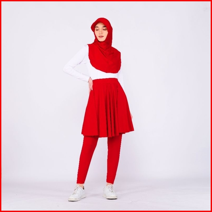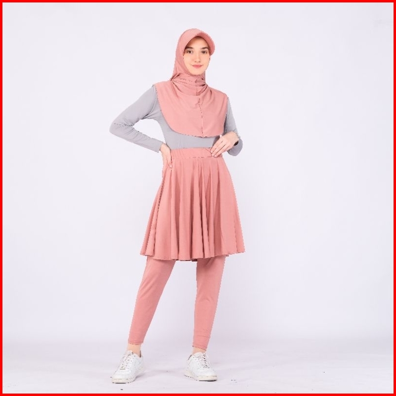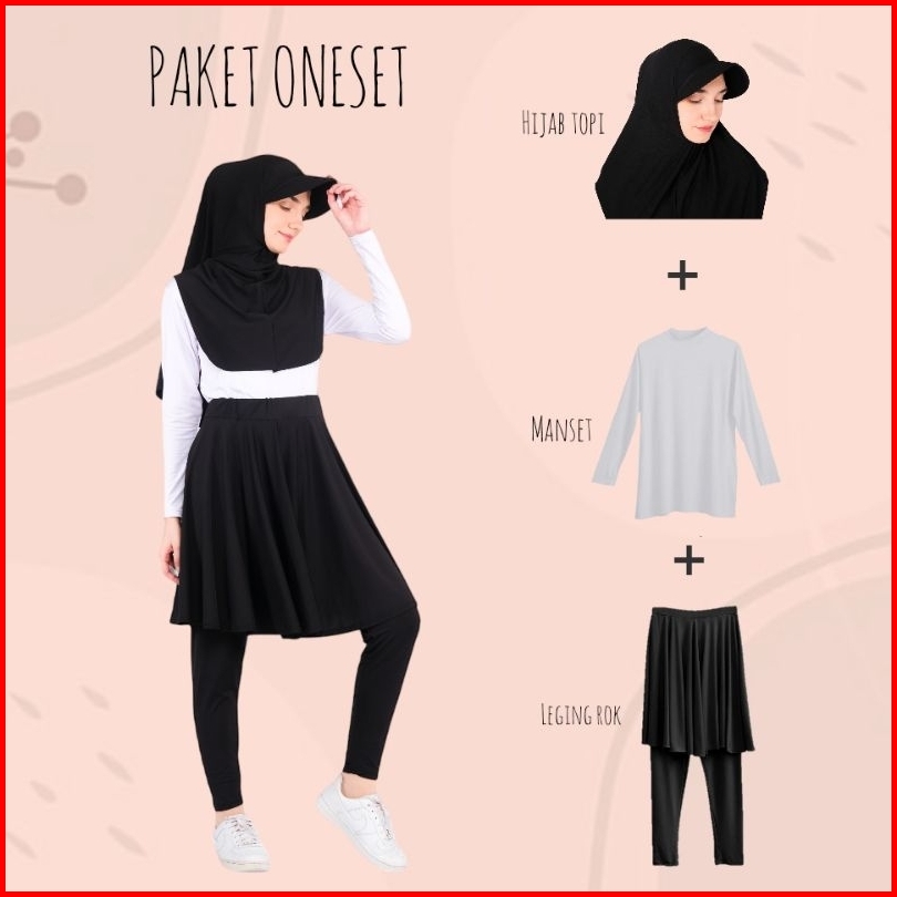 Paket Setelan Sport Leging Rok Hijab Topi Dan Manset