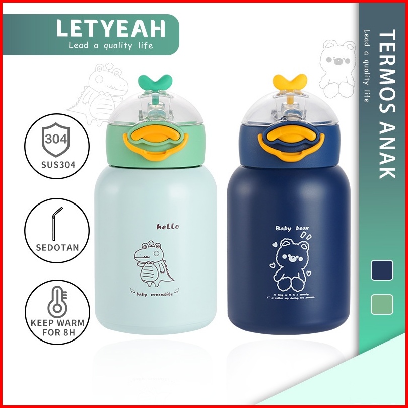 Back To Schoolletyeah Lucu Vacuum Flask Sedotan Anak 350ml Termos Anak Stainless Steel 304 Portabel Botol Minum Anak