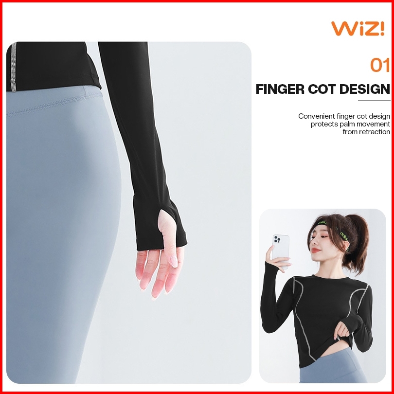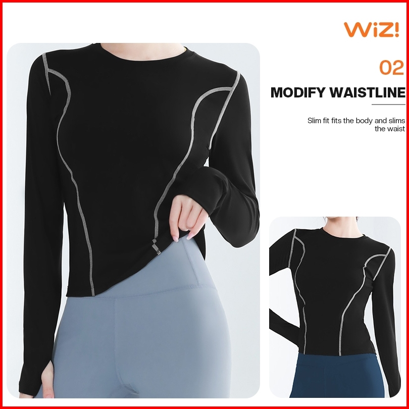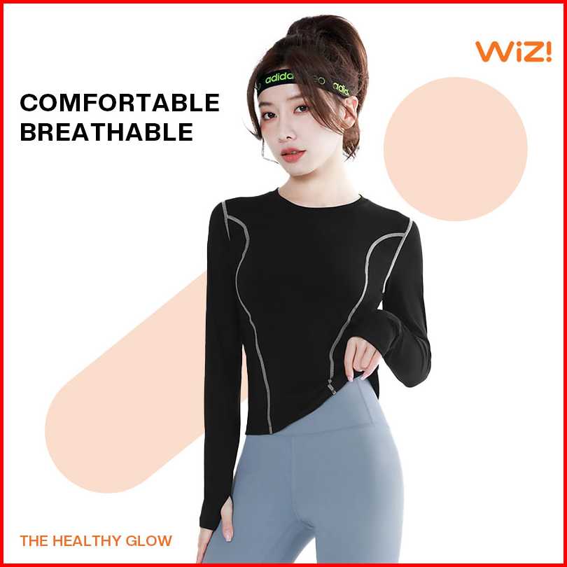 Wizi Baju Olahraga Lengan Panjang Pakaian Yoga Kaus Olahraga Kaos Yoga