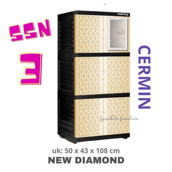Lemari Pakaian Plastik Tabitha Susun 3 Full Kunci Minimalis Cermin