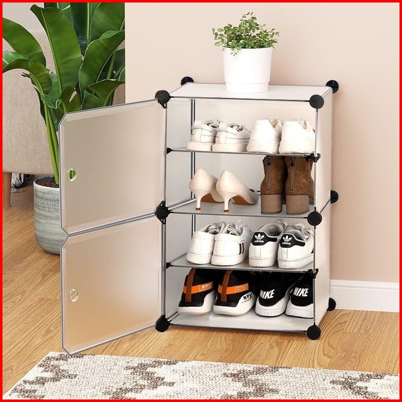 Rak Sepatu Portable 2 Kolom 4 Kotak Sendal Tebal Tertutup Anti Debu Lemari Sepatu Minimalis 4 Susun