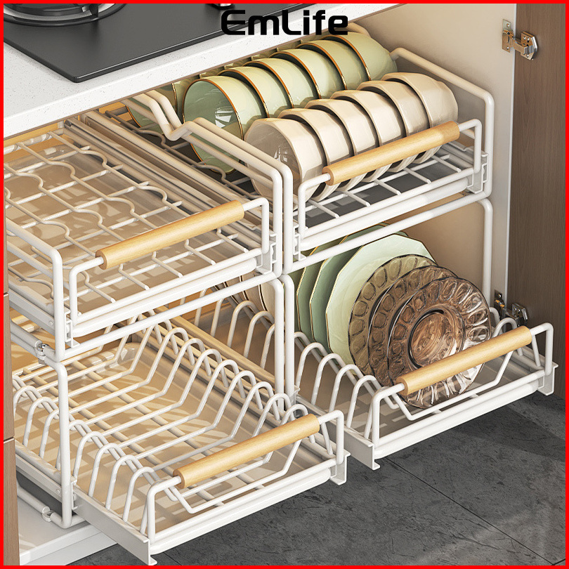 Rak Piring Pengering Piring Lemari Dapur Tarik Keluar Rak Piring Penyelenggara Rak Penyimpanan