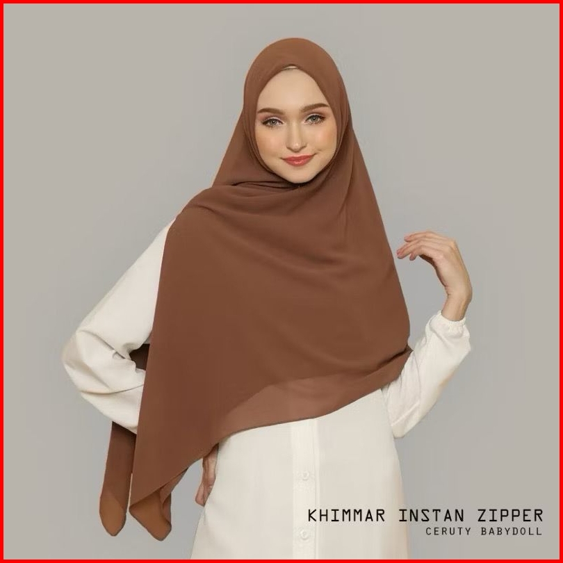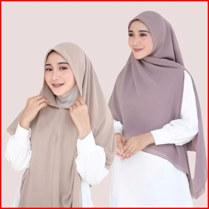 Hijab Segi Empat Zipper Ceruty Babydoll Premium Khimar Zipper Resleting Dua Layer