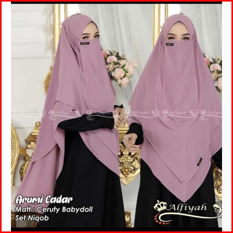 French Hijab Syari Jumbo Khimar Siria Cadar Ceruti 2 Layer Set Cadar Premium Quality