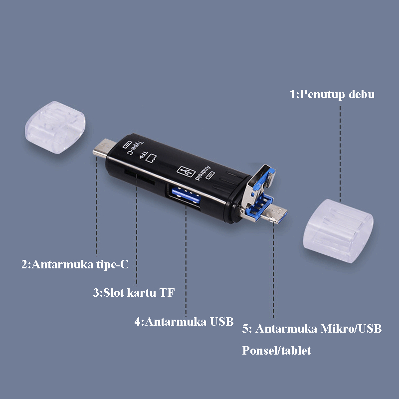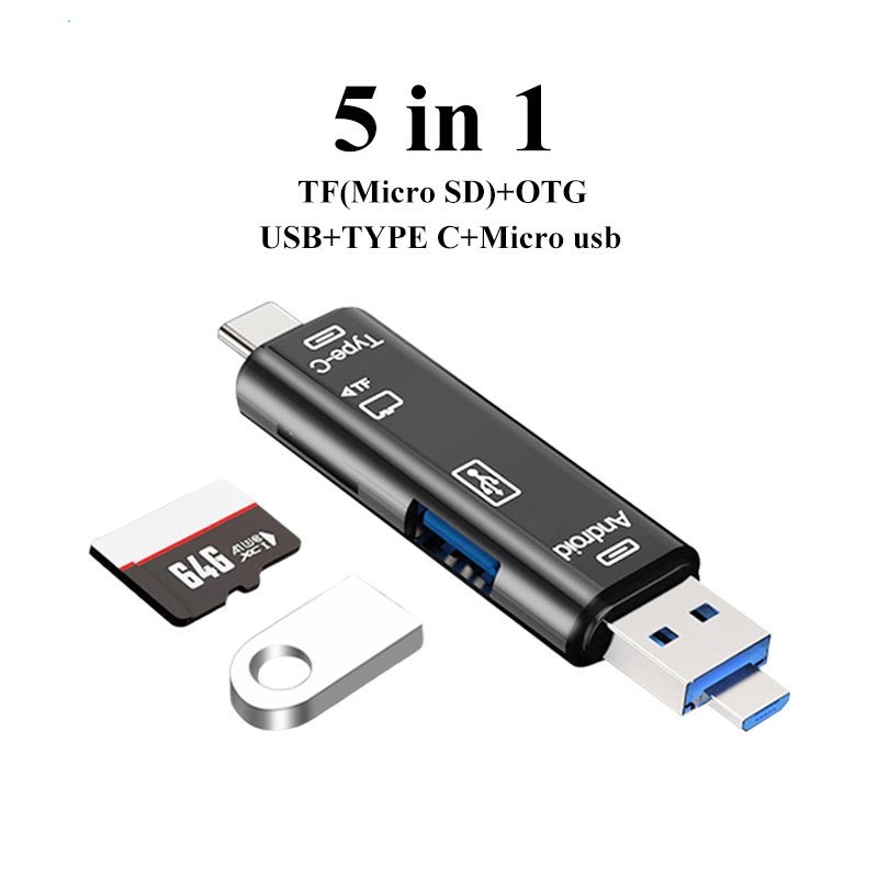Card Reader OTG 5 in 1 USB 3.0 Type C Fit For Micro SD/TF/Memory Card /Adaptor/Card Reader/Multifunction/Handphone/