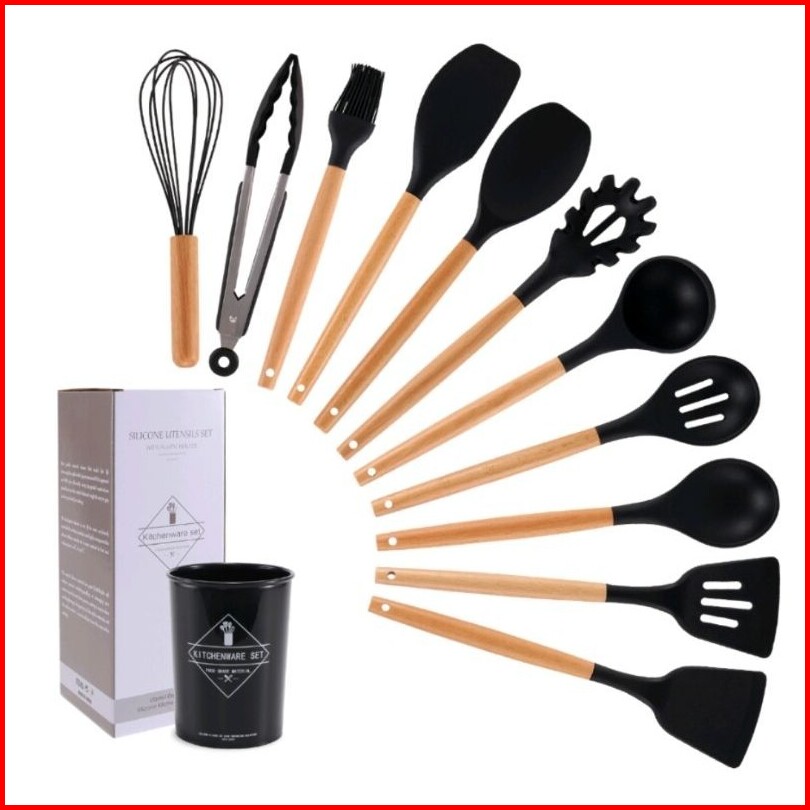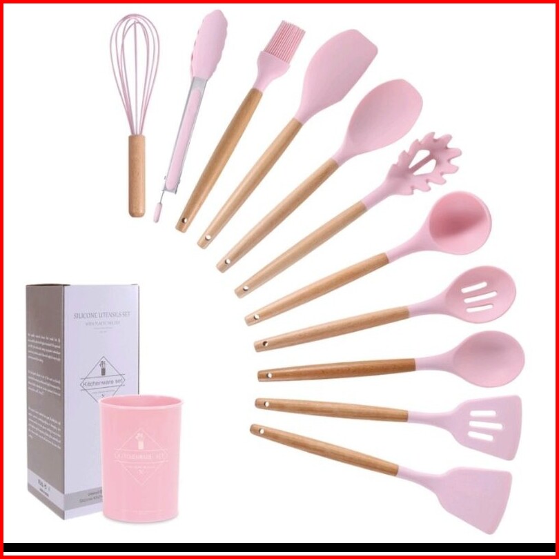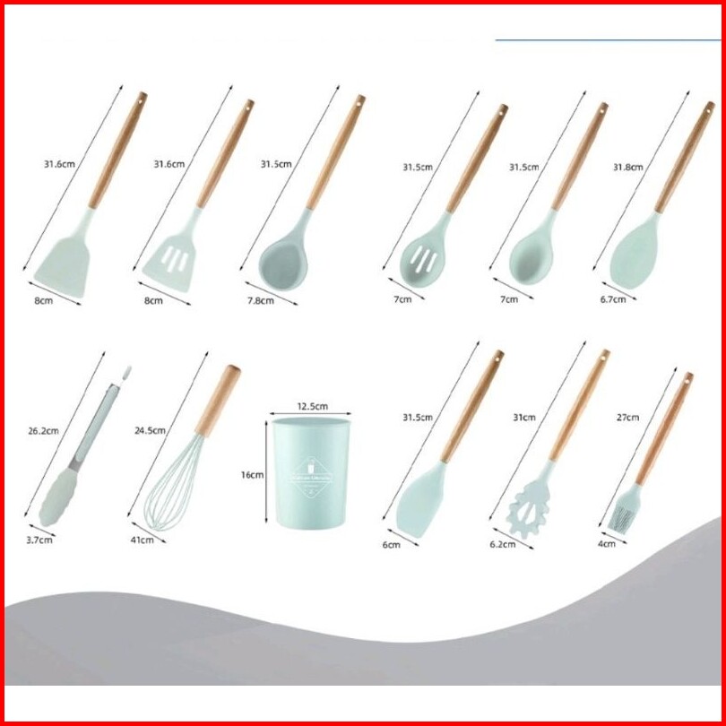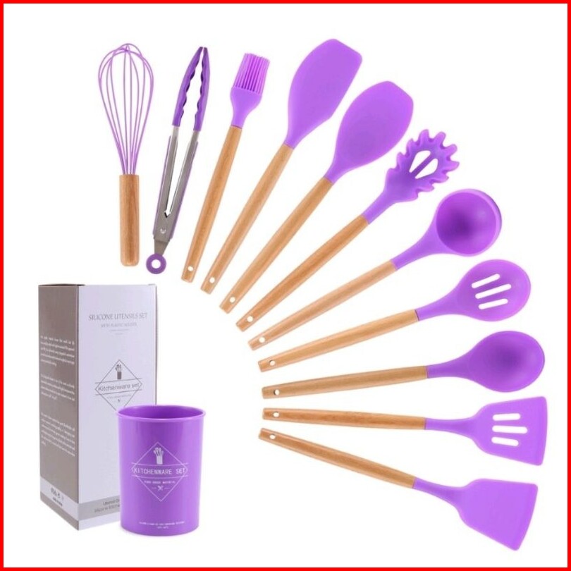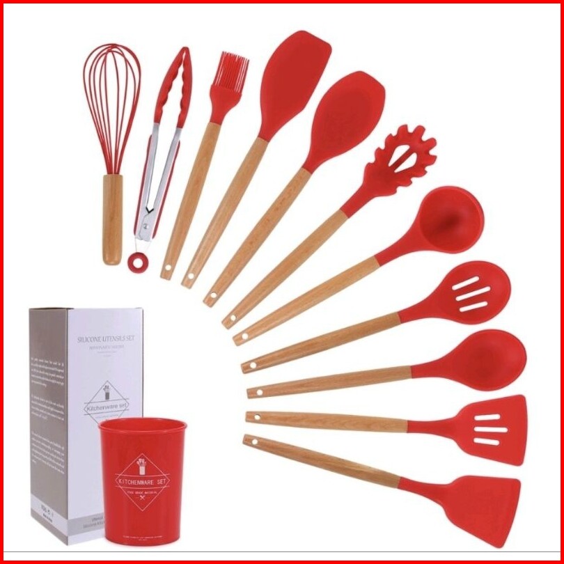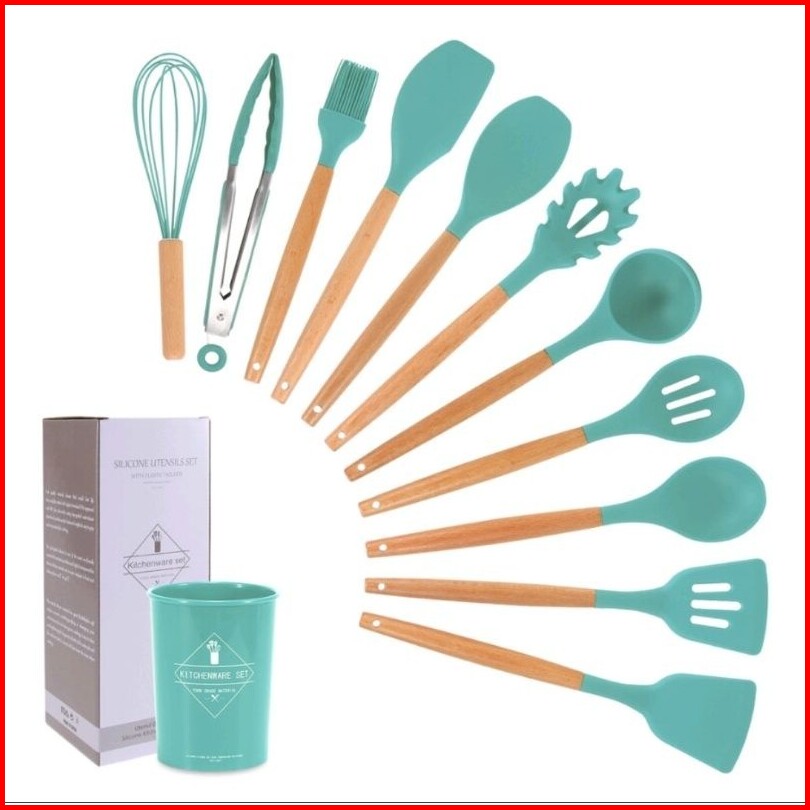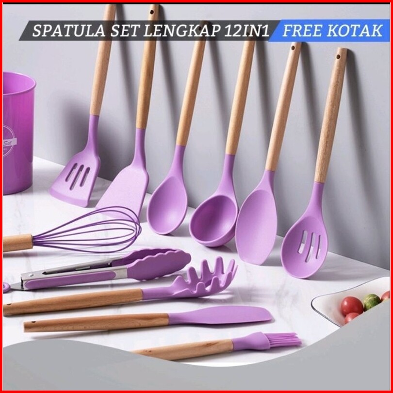 Spatula Silicone Set 12 In 1 Tahan Panas Utensil Set 12 Peralatan Masak Silikon