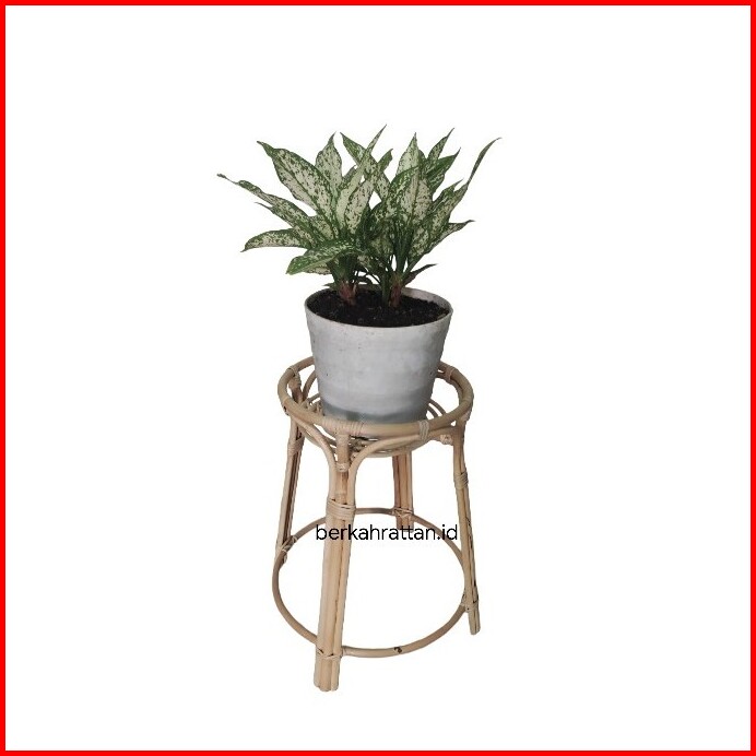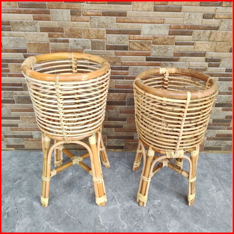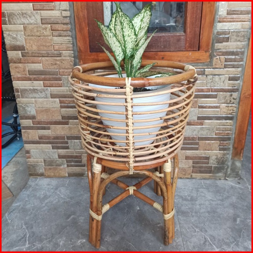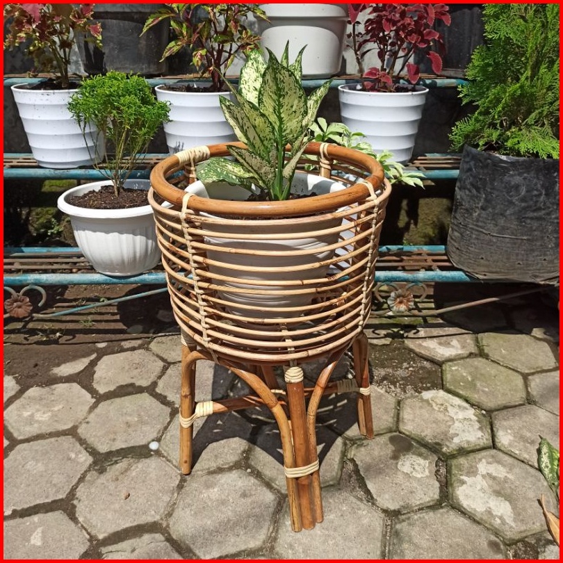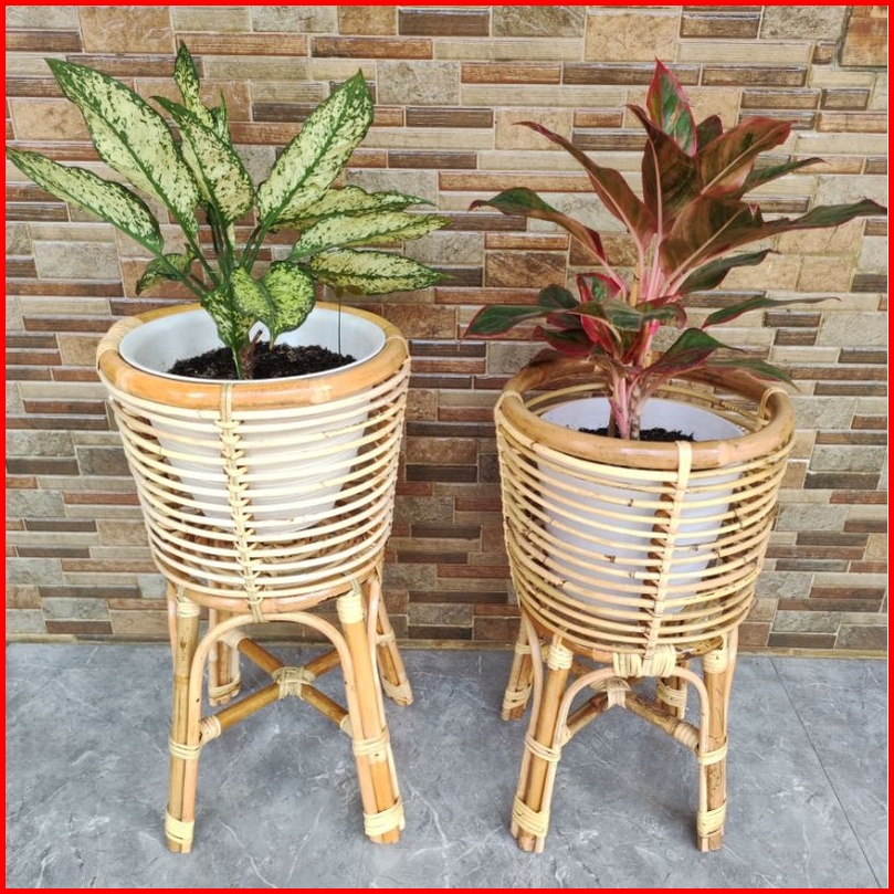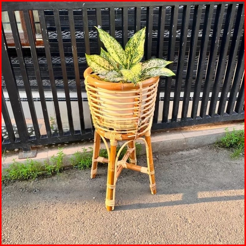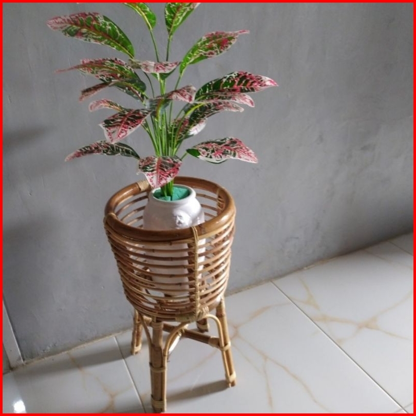 Pot Bunga Aesthetic Ruang Tamu Standing Pot Tanaman Bahan Rotan Alami Sudah Di Vernis