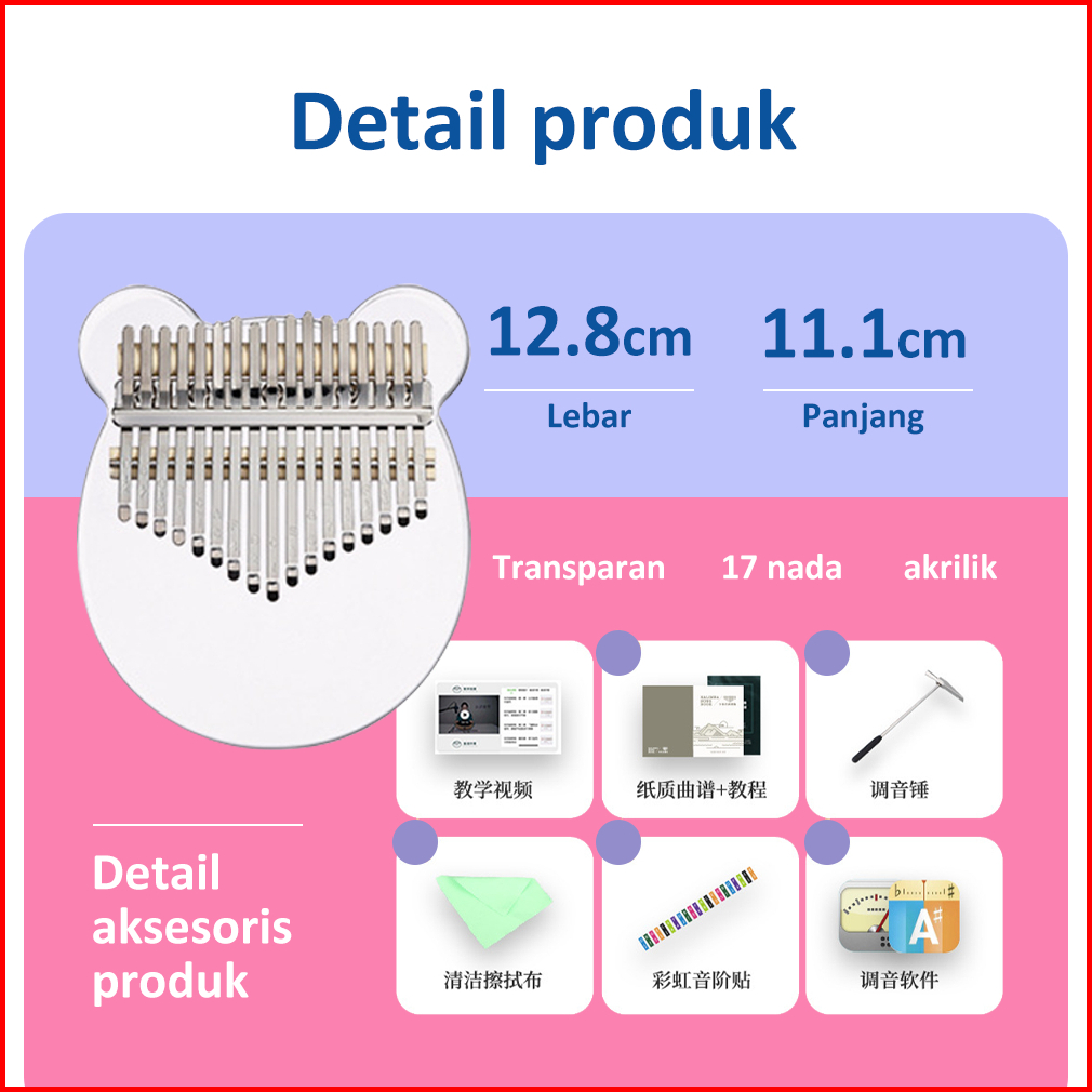 Kaikki Bear Kalimba 17 Keys - Acrylic - Alat Musik Kalimba