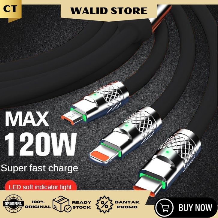 ZHIKE Kabel Data 3 in 1 Fast Charging HP Kabel Casan 3in1 Tipe C USB iOS Lightning dengan Adapter 120W 12M
