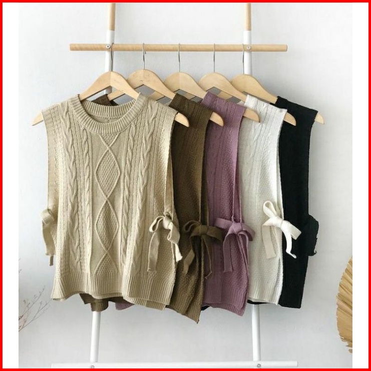 Vest Ketupat Rompi Tali Motif Cable Rompi Rajut Komputer Premium Wanita