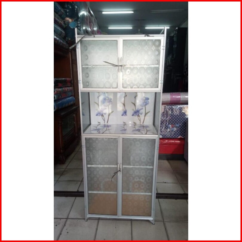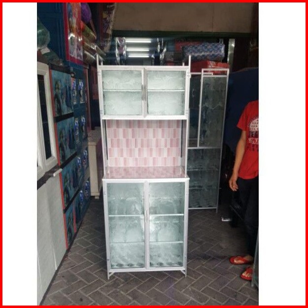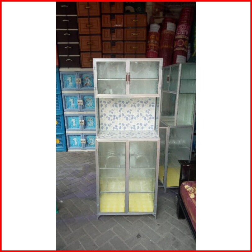 Rak Piring 2 Pintu Datar Almunium Bawah Jaring