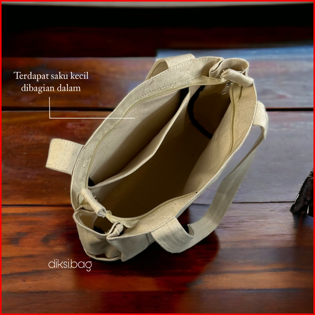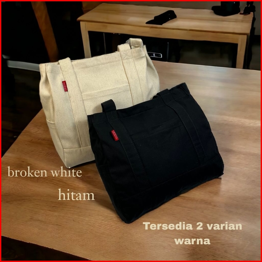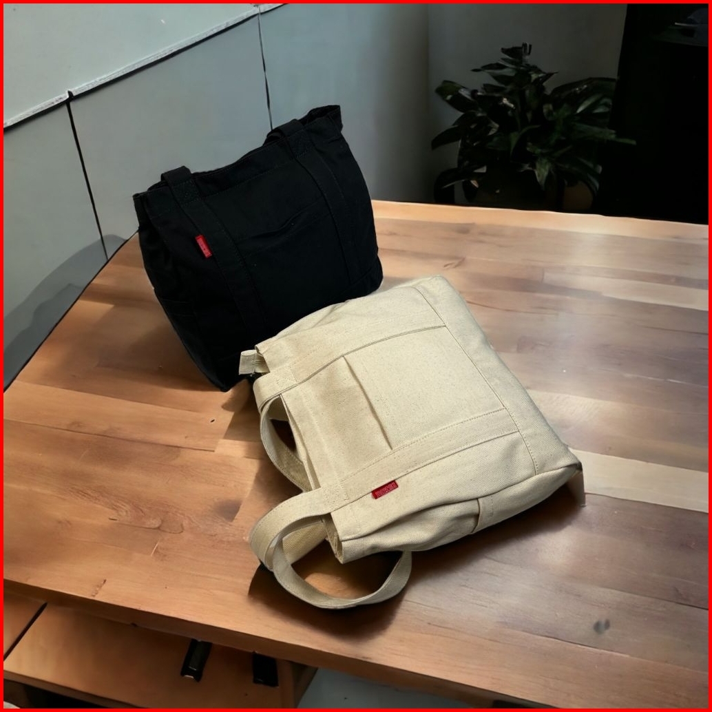 Tote Bag Kanvas Tebal Wanita Tote Bag Canvas Pria Triple Pocket