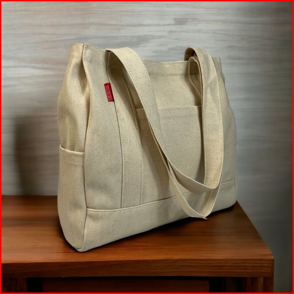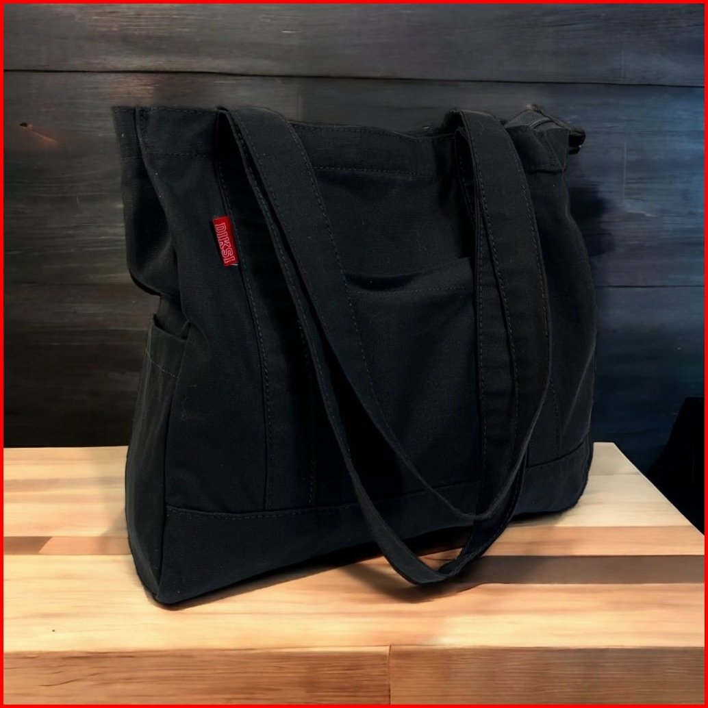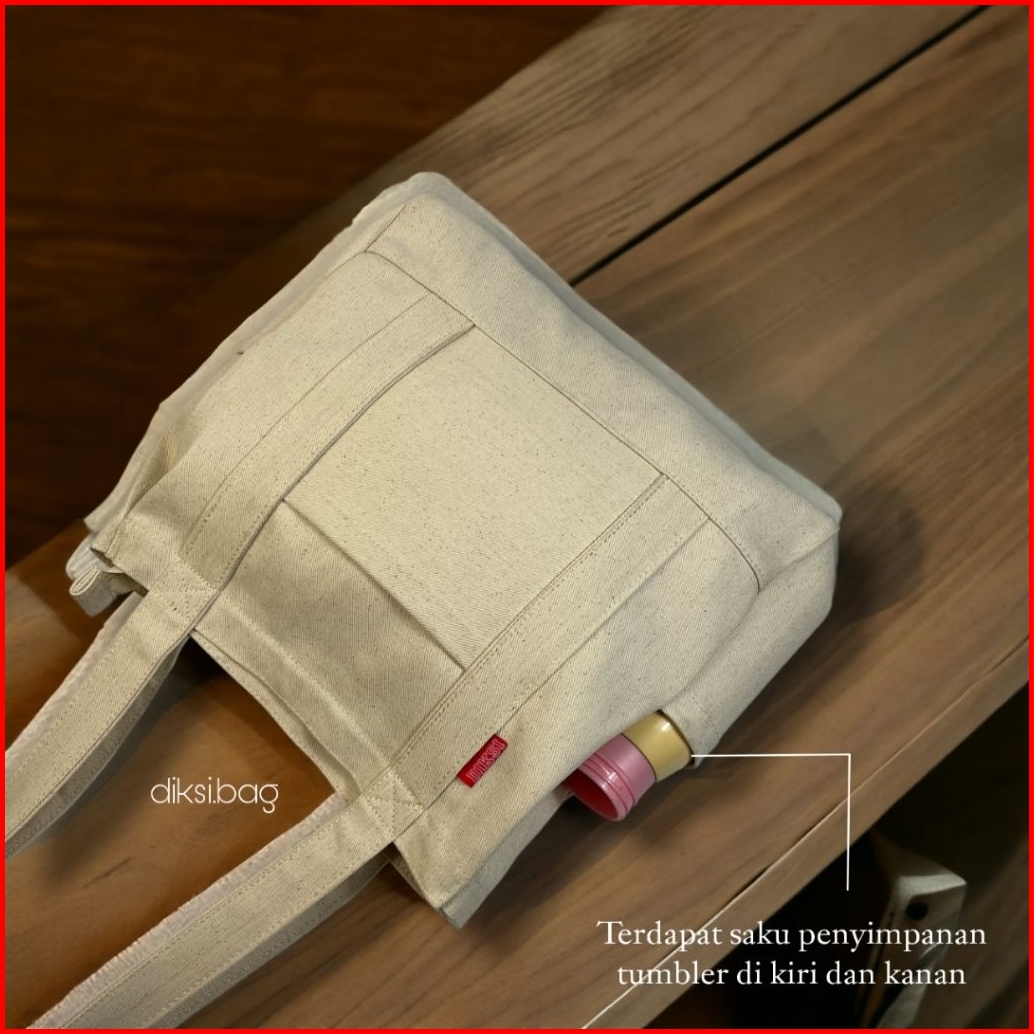 Tote Bag Kanvas Tebal Wanita Tote Bag Canvas Pria Triple Pocket