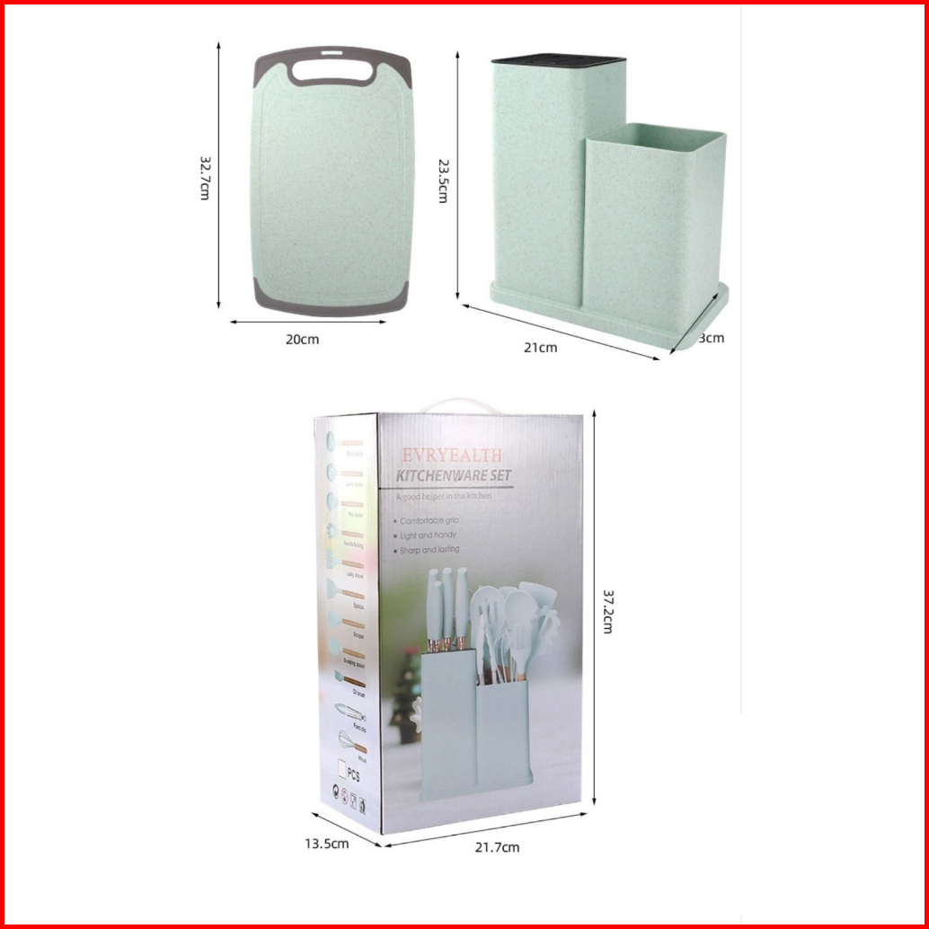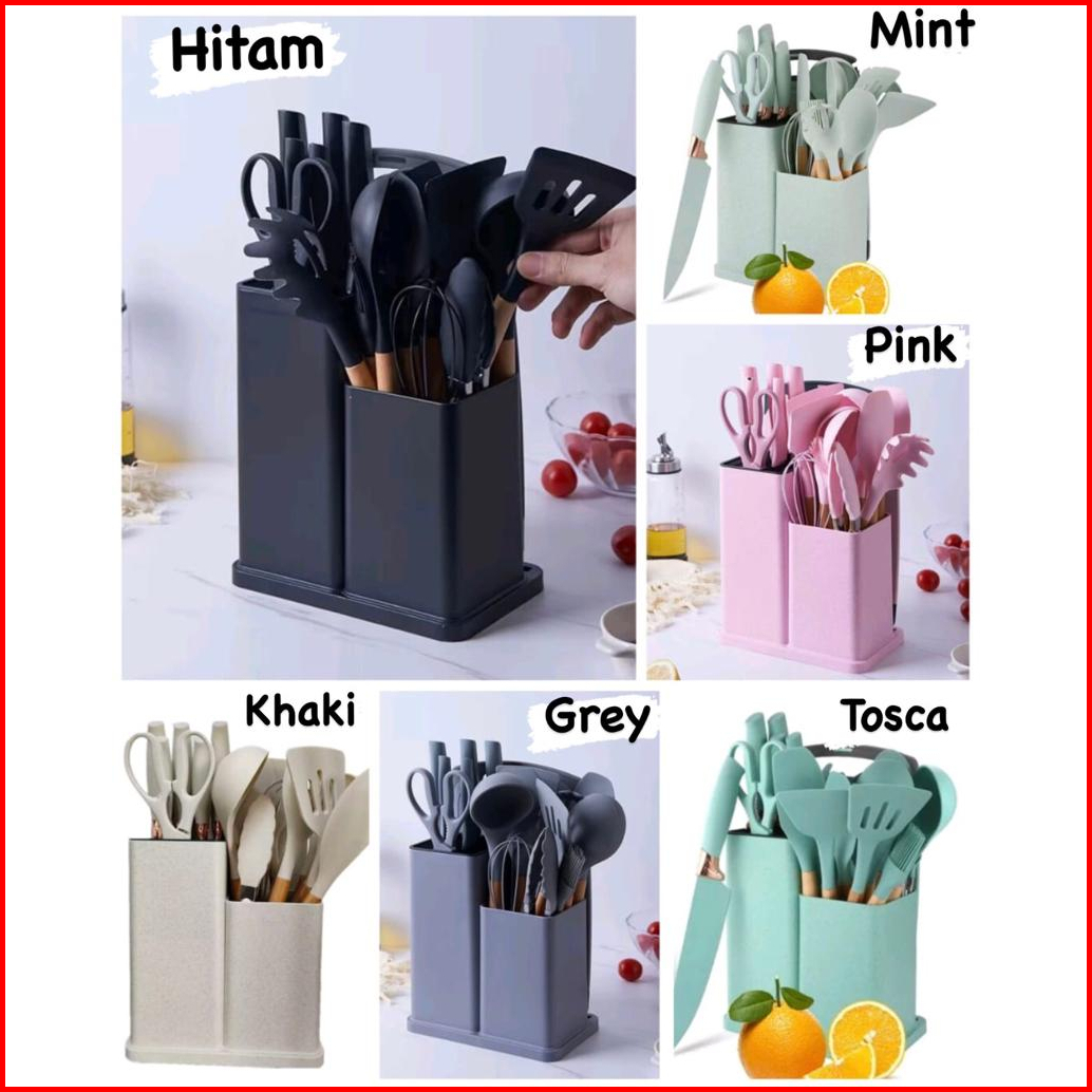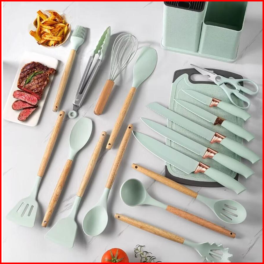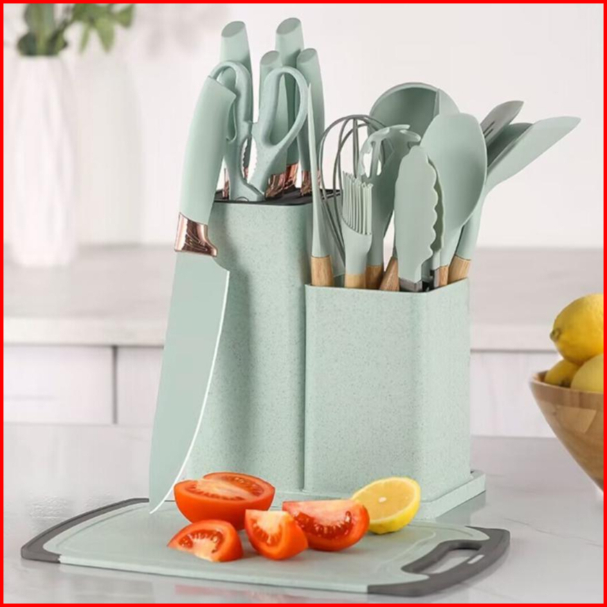 Kitchenware Set 19 Pcs Pisau Dan Sutil Silikon Spatula Set 19 Pcs Pisau Gunting Set Talenan Anti Panas Dan Anti Lengket