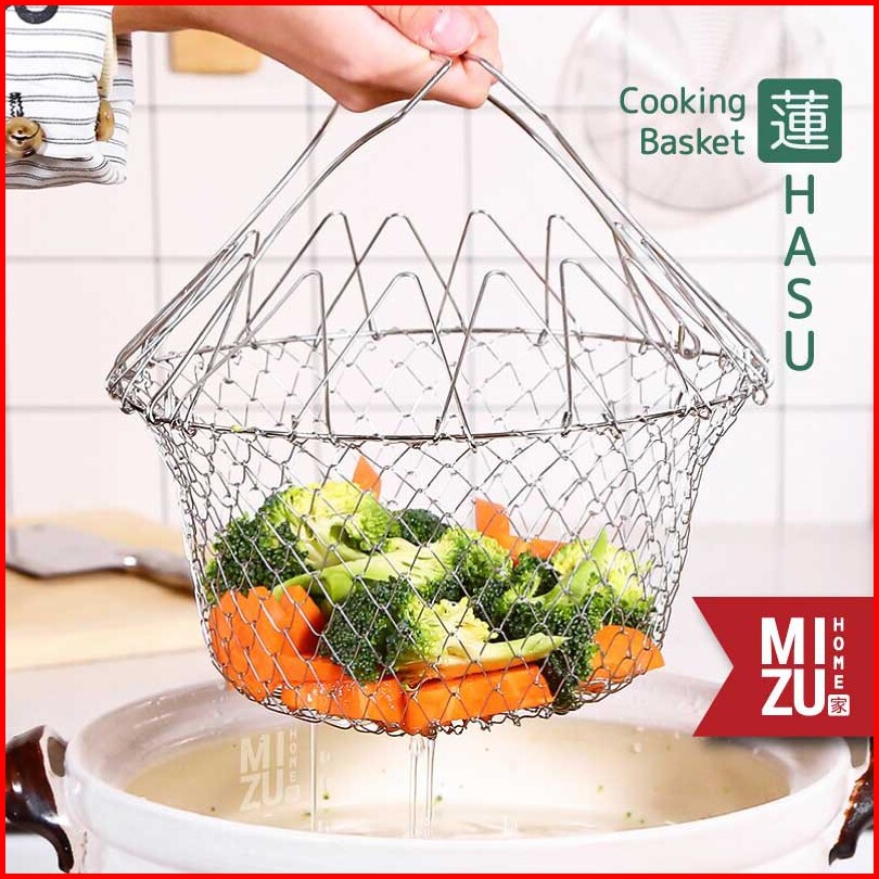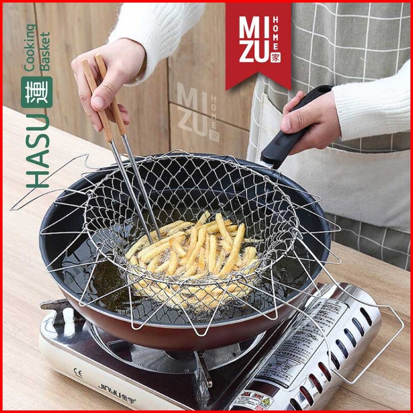 Hasu Cooking Chef Basket Stainless Steel Colander Keranjang Goreng Kentang Emping Saringan Rebus