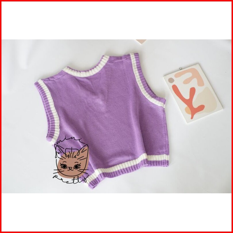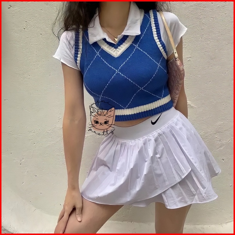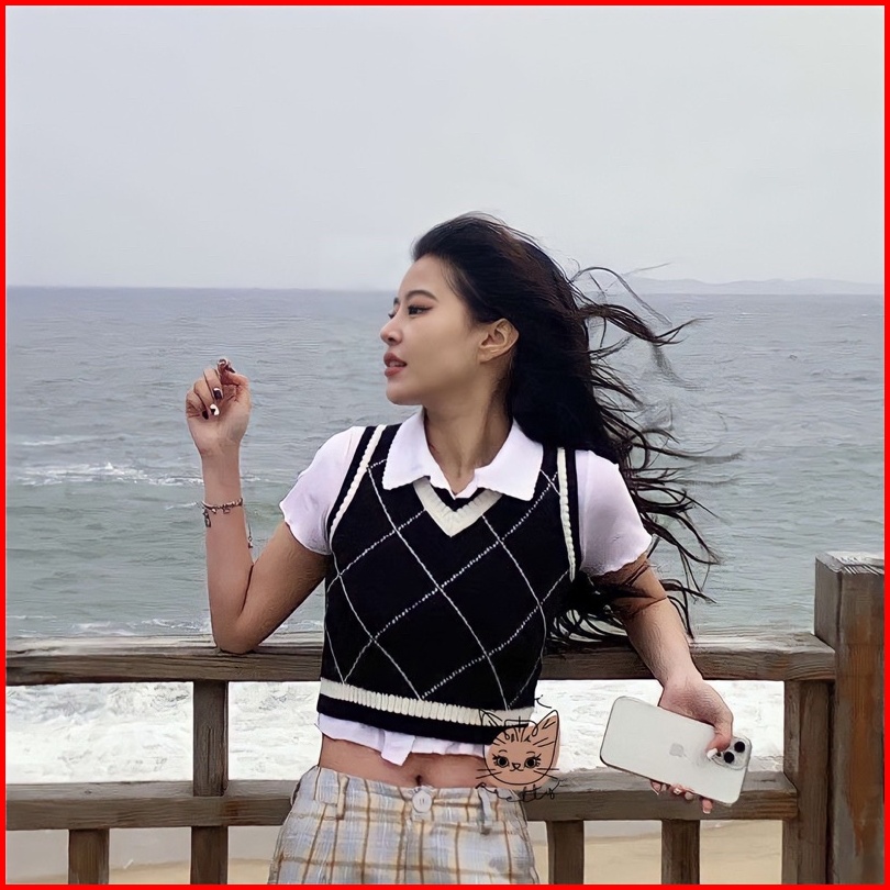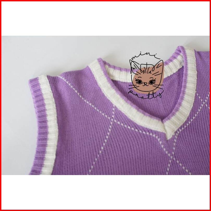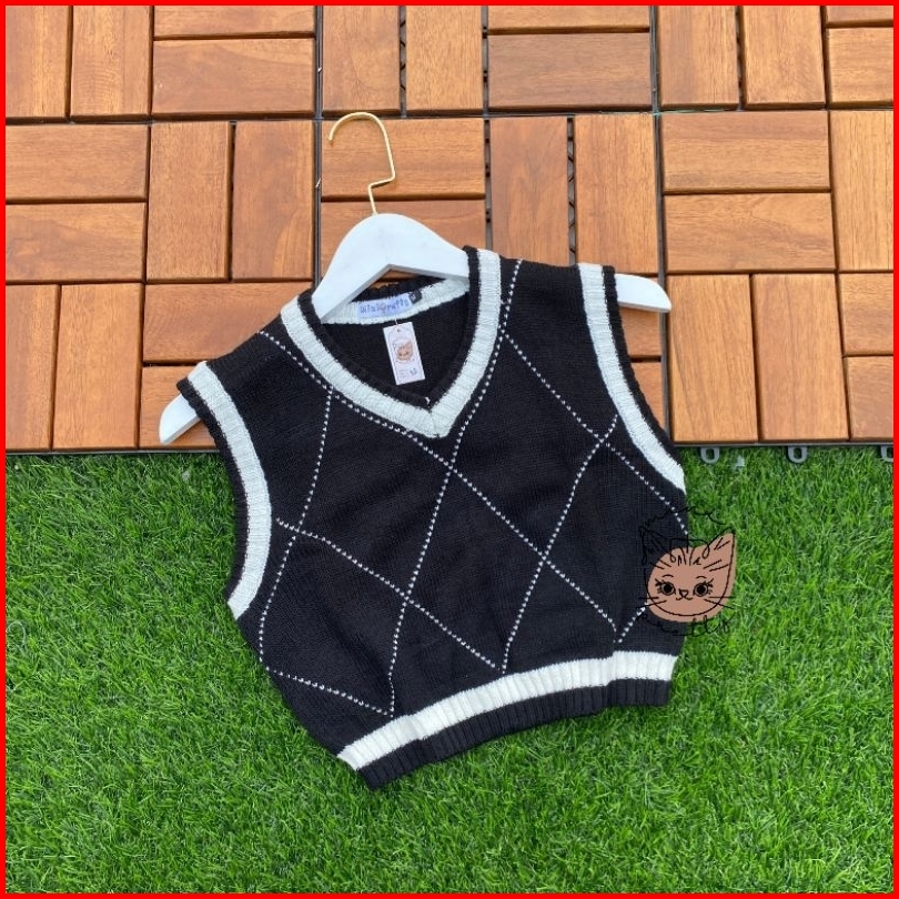 Vest Preppy Crop Rompi Rajut Argyle Plaid