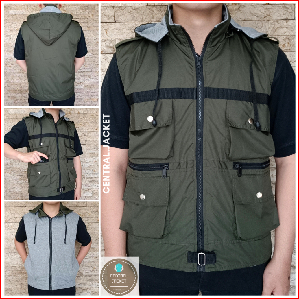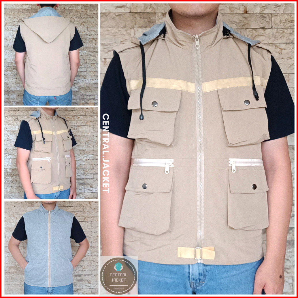 Jaket Rompi Katun Topi Multifungsi - Rompi Vest Partai Lapangan - Vest Outdoor