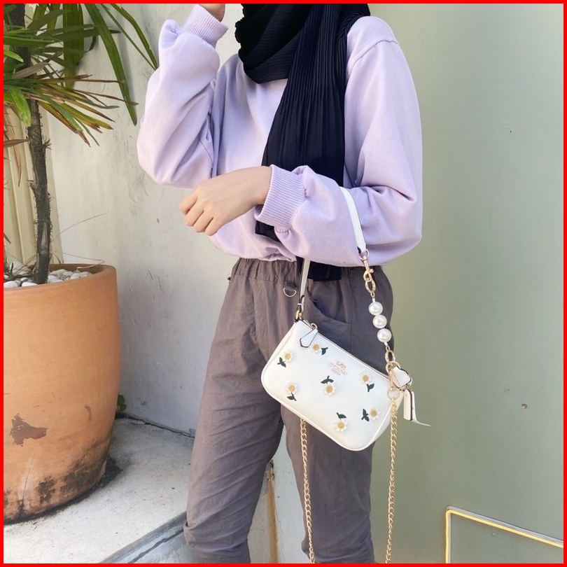 Tas Wanita Import C0ac Flower Daisy Series Bunga Timbul White Bag