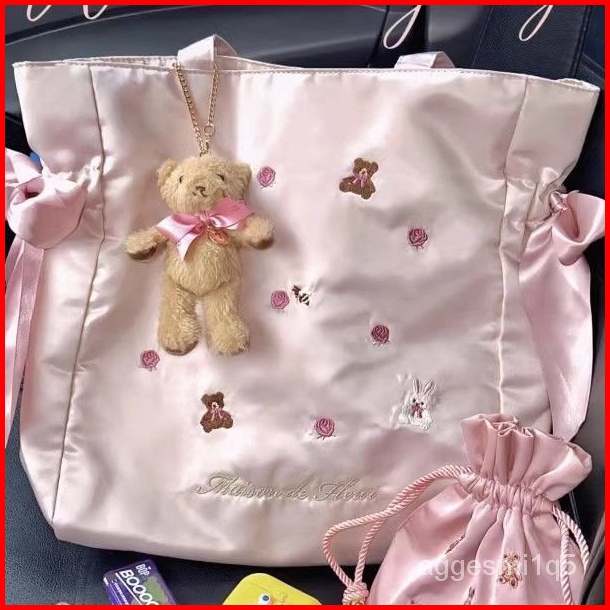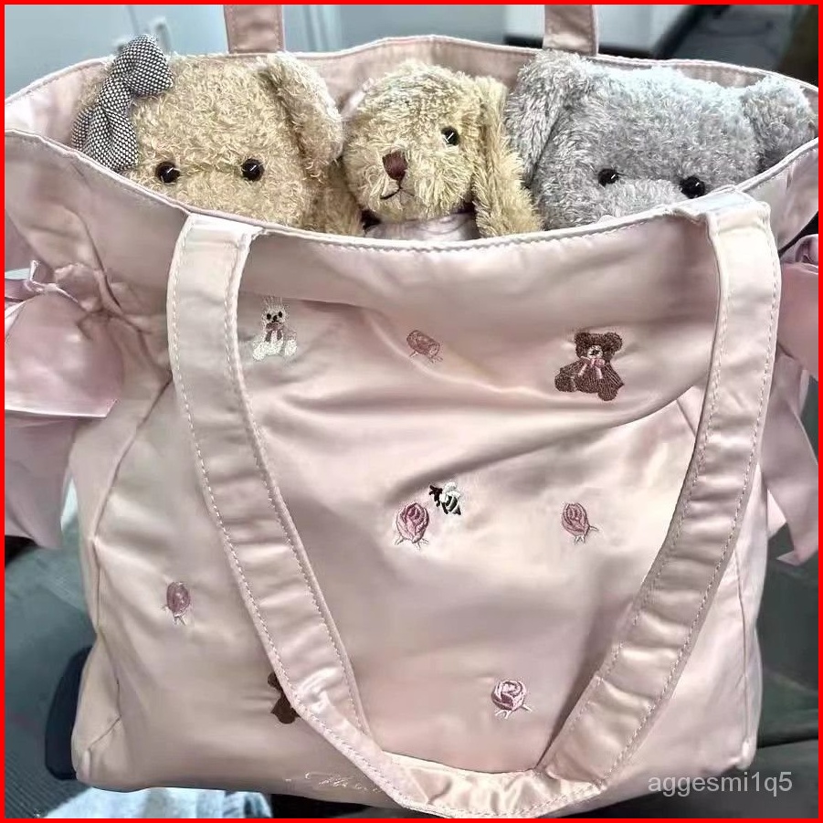 Ttwn Bear Bag Original-japanese Maisondefleur Dupes Rabbit Bear Embroidery Bow Handbag Totebag Girly Style Shoulder Bag