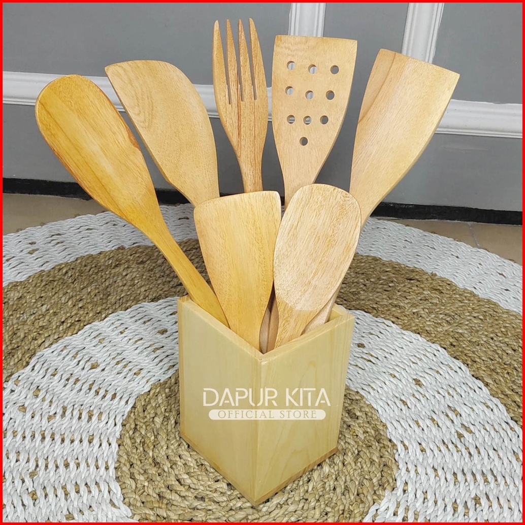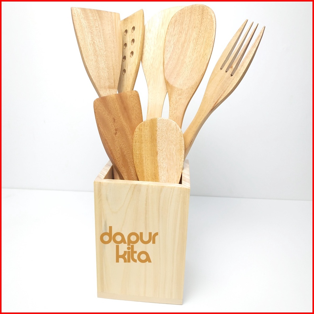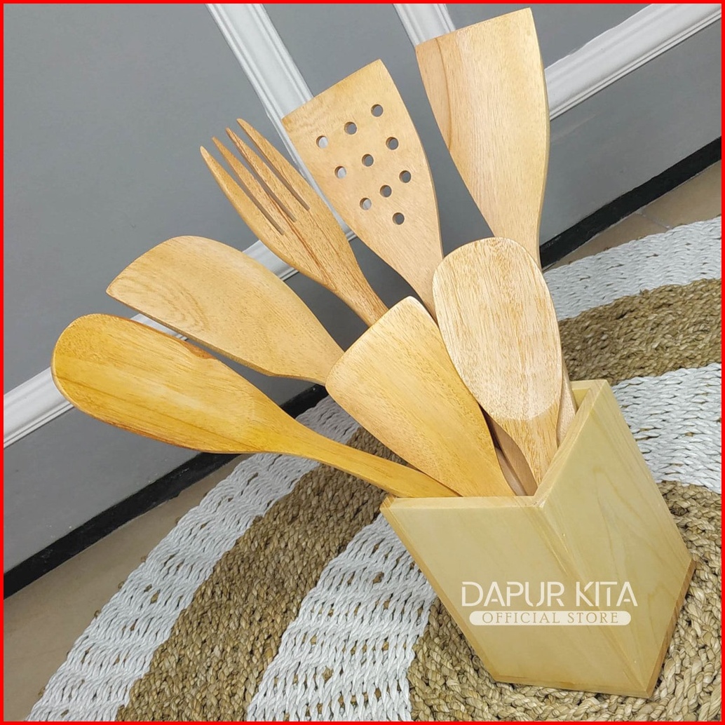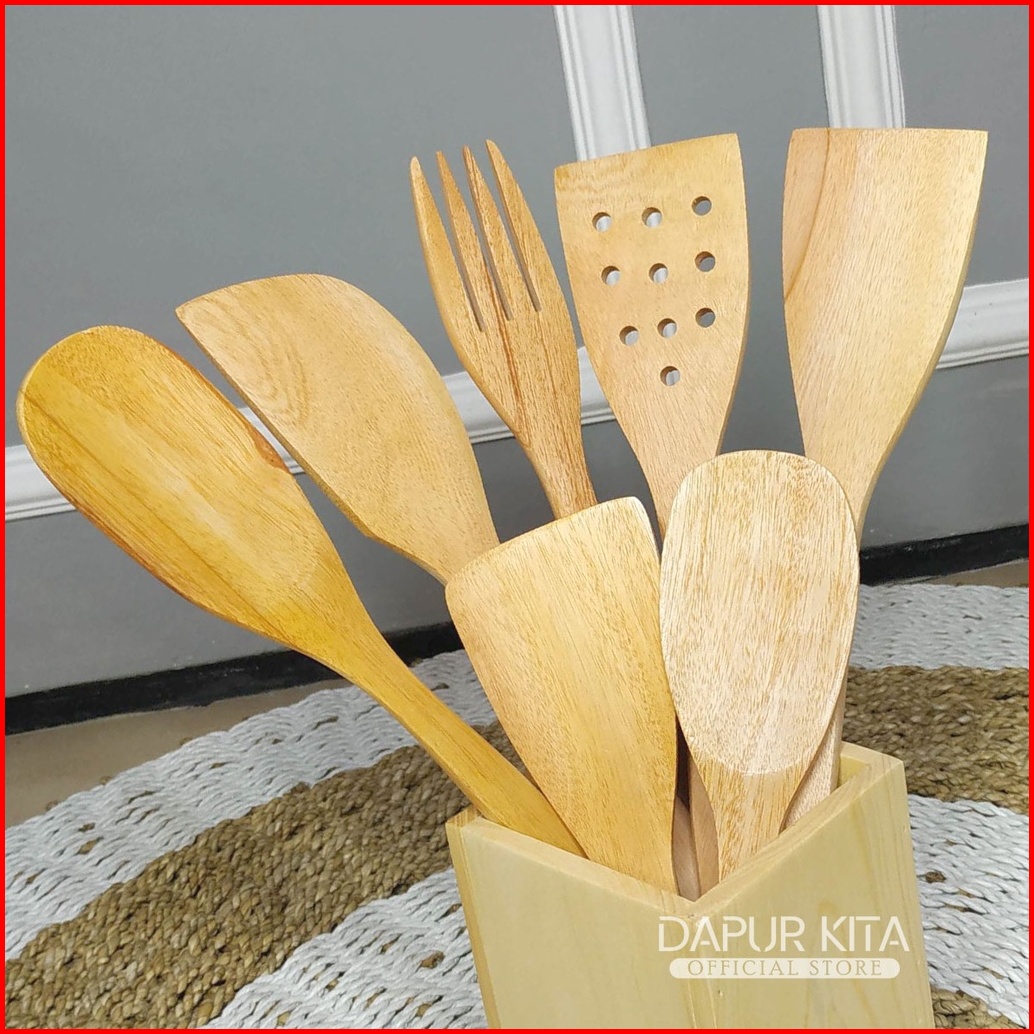 Spatula Set Isi 7pcs Kayu Mahoni Kotak Box Standart Uk 10x10x15cm Bahan Kayu Pinus