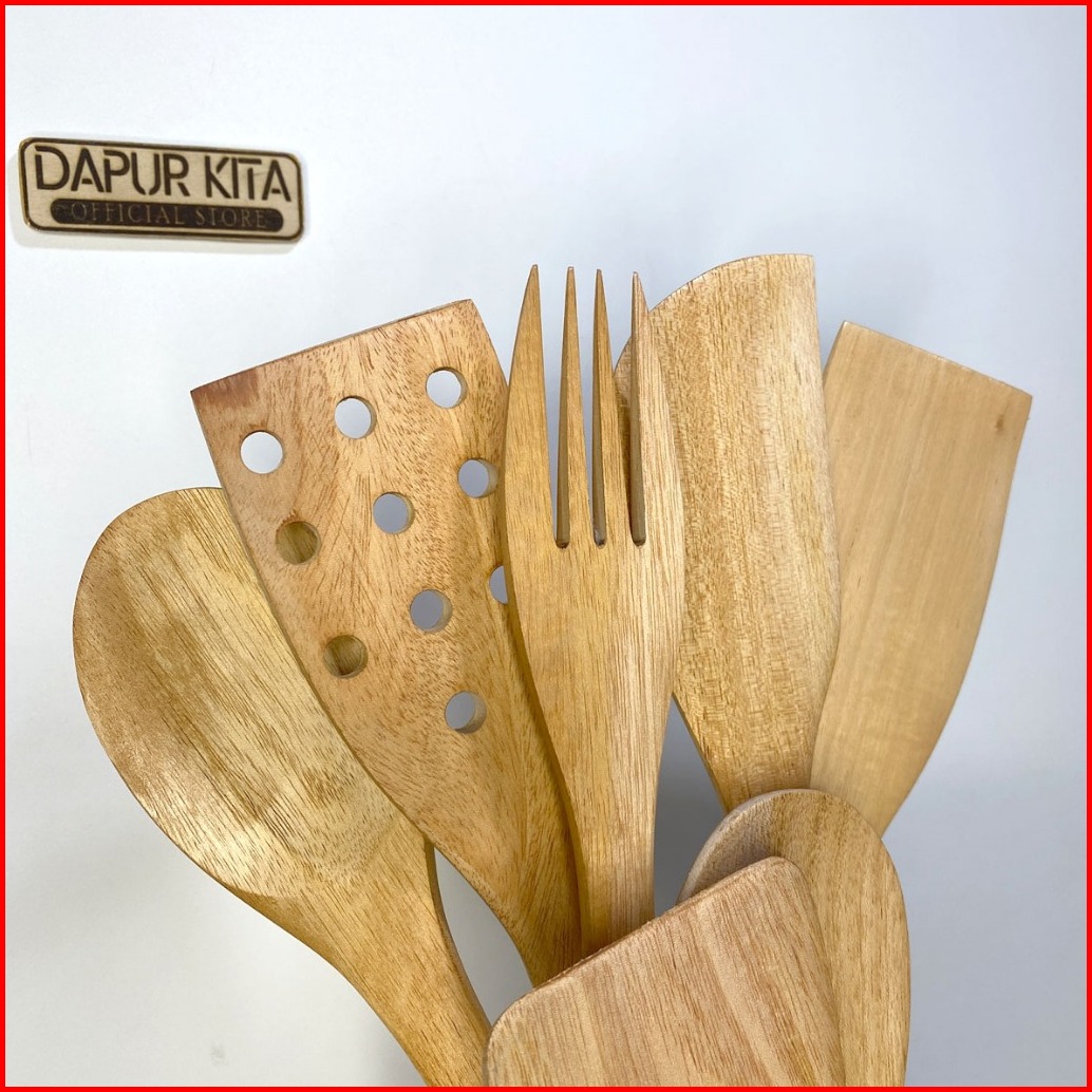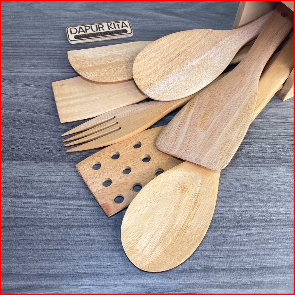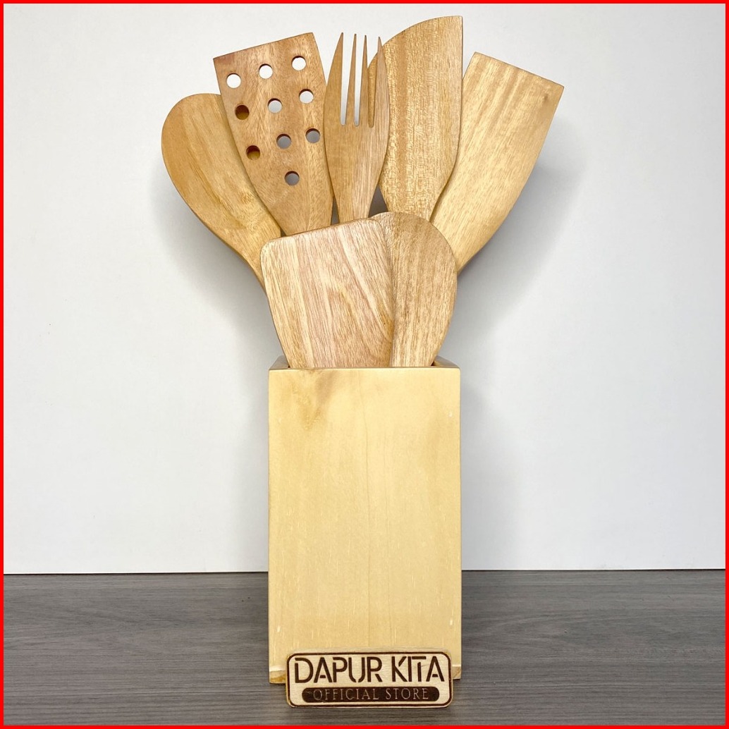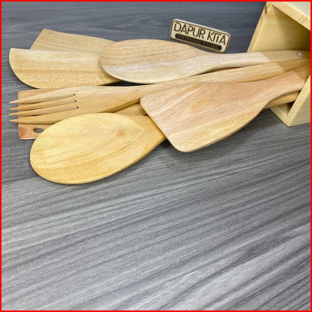 Spatula Set Isi 7pcs Kayu Mahoni Kotak Box Standart Uk 10x10x15cm Bahan Kayu Pinus