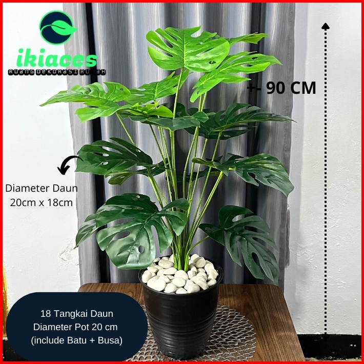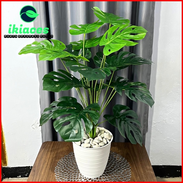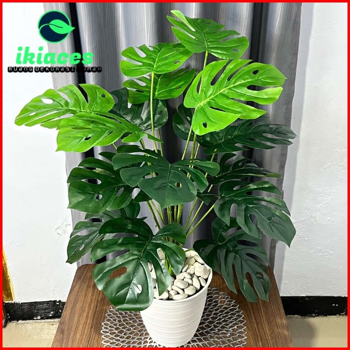 Daun Monstera Jumbo 18 Cabang Daun Monstera Artificial Pot Bunga Hias Murah Bunga Plastik Daun Palsu Dekorasi Tanaman Hi